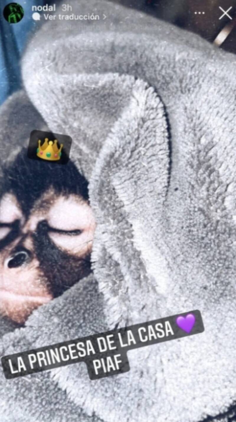 El cantante Christian Nodal decidió compartir con sus seguidores, mediante sus Insta stories, a su nueva mascota: una pequeña mono araña a quien describió como "La Princesa de la Casa". En la imagen se puede apreciar al pequeño animal durmiendo envuelto en una cobija.