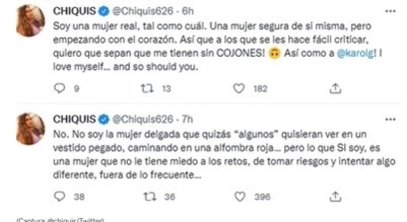 "Así que, a los que se les hace fácil criticar, quiero que sepan que ¡me tienen sin cojones! así como a Karol G. Me amo a mí misma y también deberían", añadió.