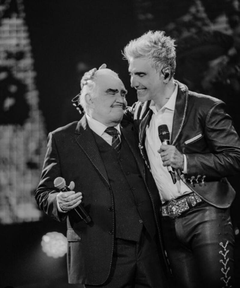 Hace muchos años, Vicente y Alex compartían el escenario y se dedicaban la canción, incluso fue parte de una película, y ahora es el nieto quien la escucha, y El Potrillo no pudo con la emoción.