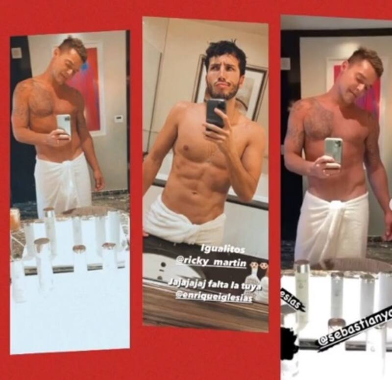 Antes del show, Ricky y Sebastián subieron fotos mostrando sus "cuadritos", y donde apenas una toalla tapaba sus áreas íntimas.