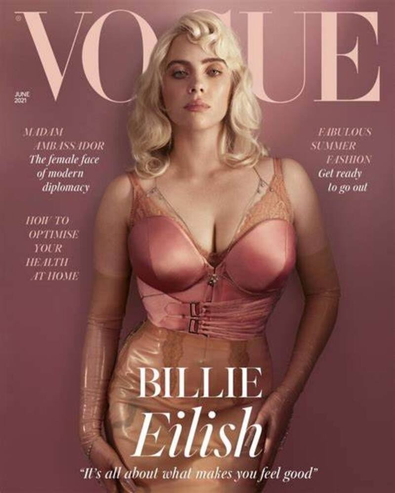 En corsé y ligas, Billie Eilish posó, en mayo pasado, para la portada de la revista "Vogue". La nota causó gran revuelo en redes sociales, pues hasta ese momento la cantante se caracterizaba por usar ropa holgada que, prácticamente, la cubría de la cabeza a los pies.