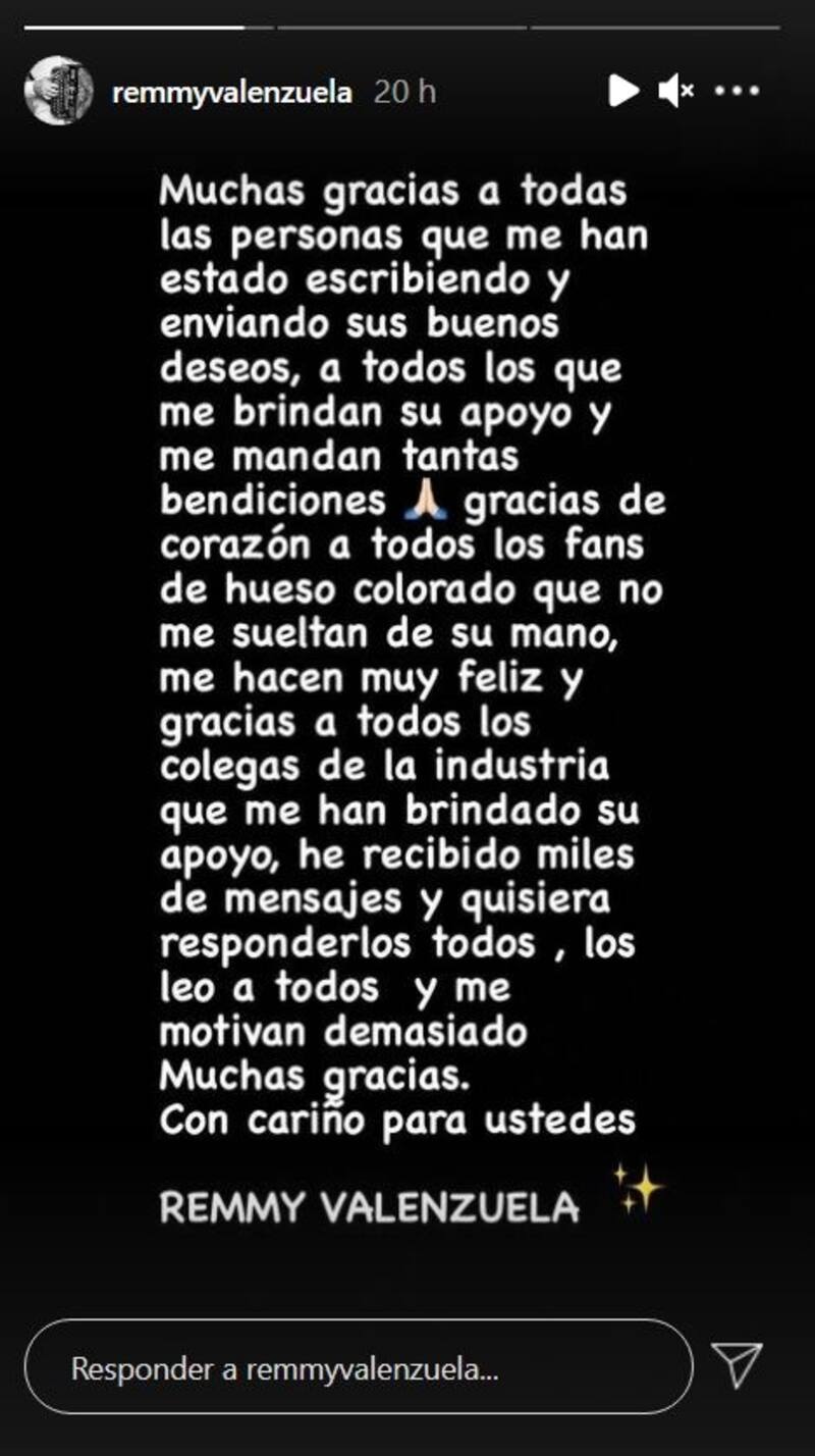 En otra publicación escribió lo siguiente: "Muchas gracias a las personas que me han estado escribiendo y enviando sus buenos deseos, a todos los que me brindan su apoyo y me mandan bendiciones, gracias a todos los fans de hueso colorado que no me sueltan de su mano, me hacen muy feliz".