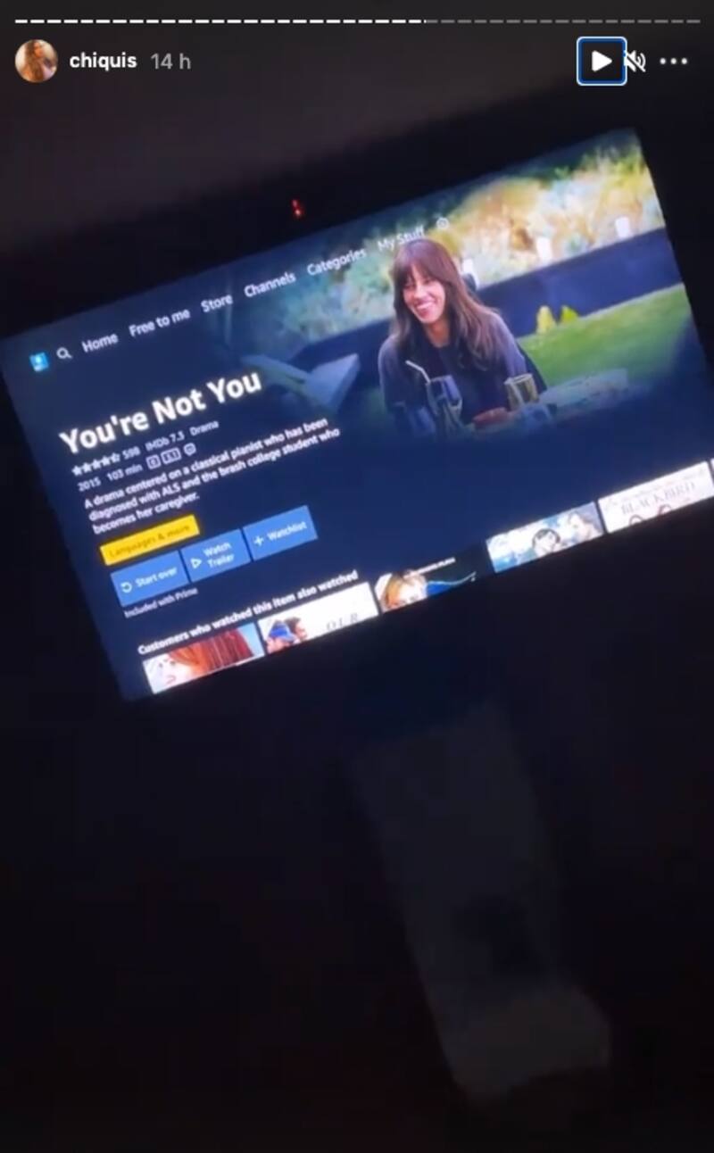 Se trata de la película "You're not you", protagonizada por las actrices Hilary Swank, Emmy Rossum y el actor Josh Duhamel (con quien tuvo un romance, la mexicana Eiza González). En las publicaciones de puede observar cómo la cantante de 36 años, está envuelta en lágrimas a causa del filme.