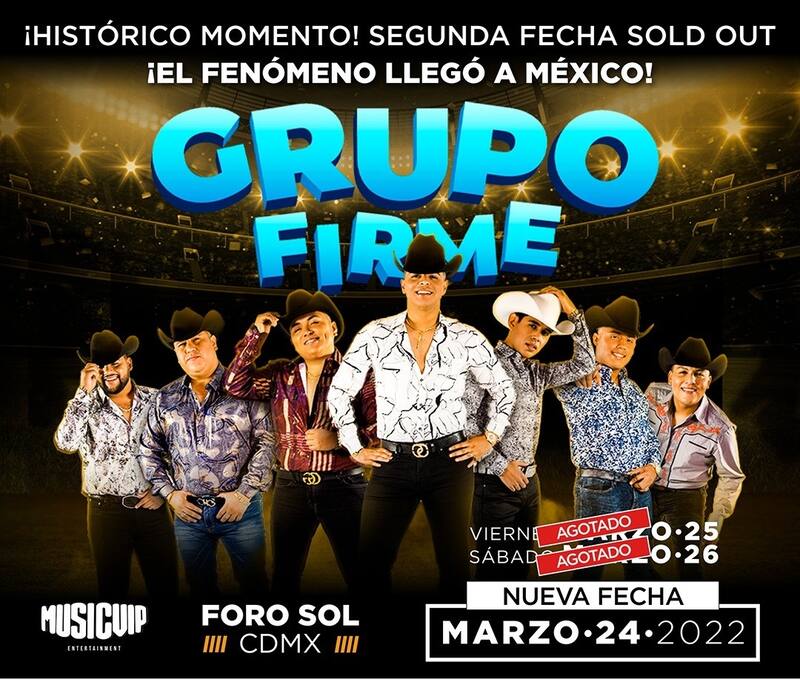Grupo Firme es hoy día una de las bandas más exitosas del regional mexicano. La agrupación liderada por Eduin Caz agotó en 45 minutos las localidades para su primera fecha programada en el Foro Sol el 26 de marzo, y lo mismo ocurrió con la segunda, para el viernes 25 de marzo.