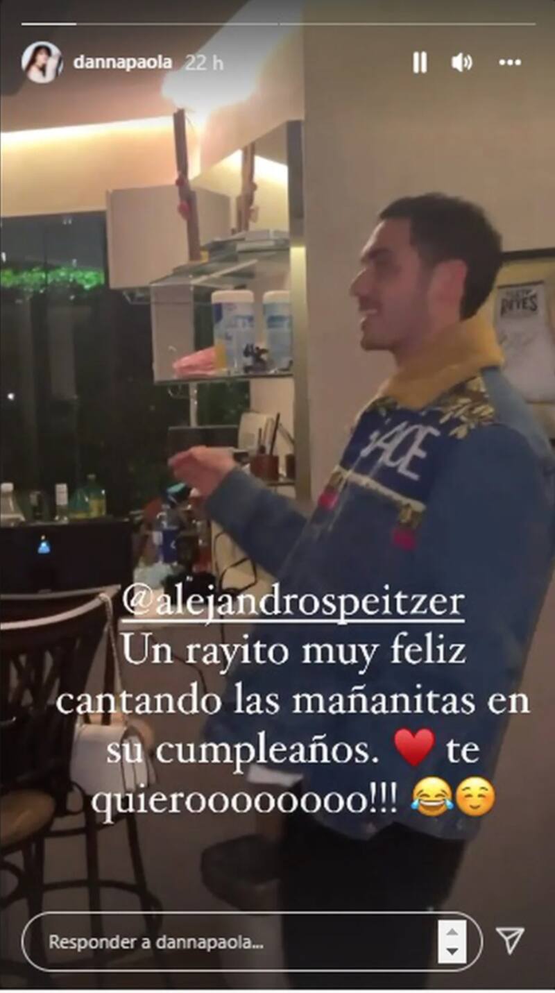 Junto a otros amigos organizaron una privada reunión para celebrar al actor. En realidad la publicación de Danna fue muy breve, un video con mensaje en sus historias de Instagram nada más, pero muy significativo. En él podíamos escuchar cómo los presentes le cantaban "Las Mañanitas" mientras Alex Speitzer sonreía emocionado, nervioso y agradecido. No vimos a la cantante en la historia pero pudimos escucharla cantar.