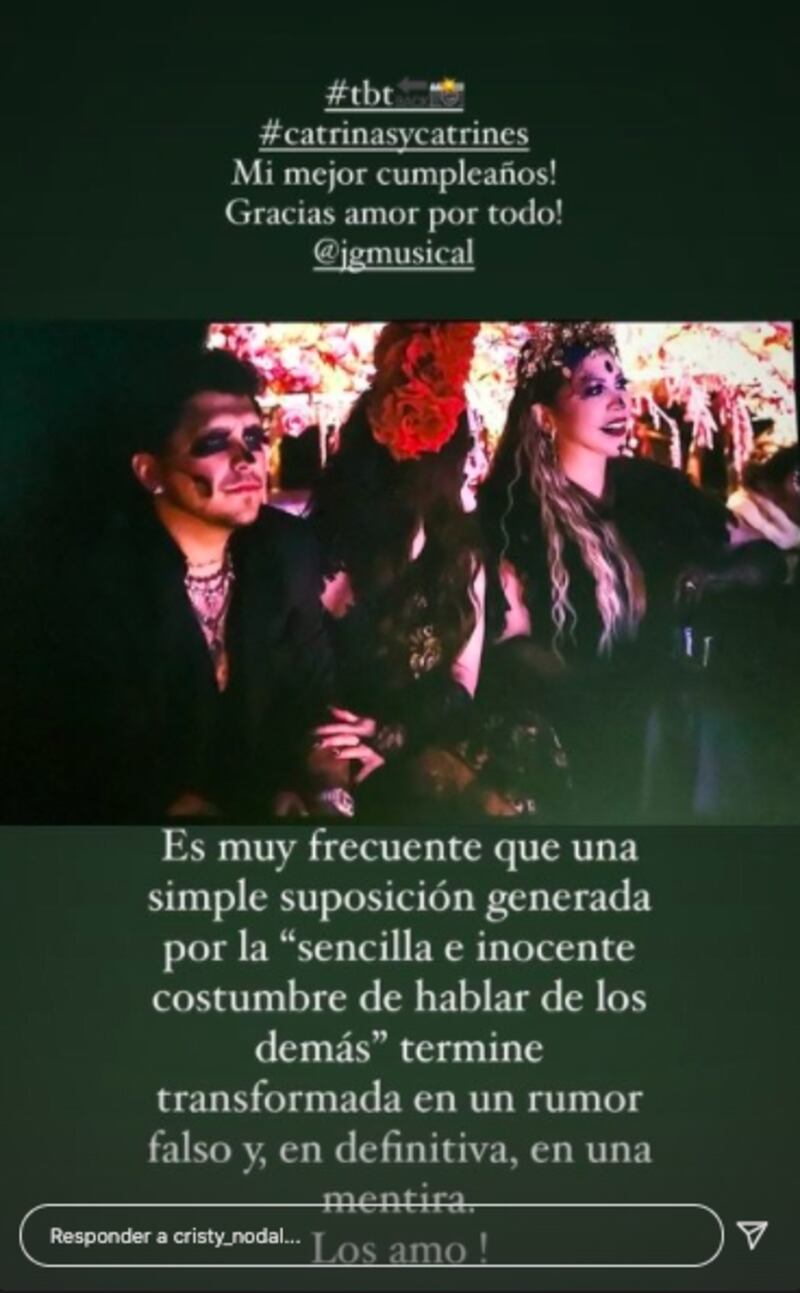 A pocas horas de darse a conocer esta noticia, la misma Cristy Nodal publicó el siguiente mensaje: