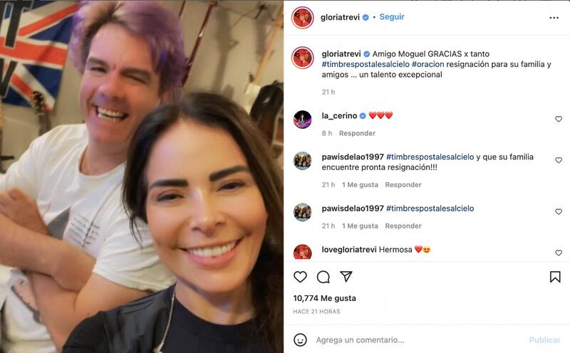Se trata de su amigo, Miguel a quien le dedicó una de sus canciones más icónicas, "Timbre Postal al Cielo": "Amigo, gracias por tanto. Pronta resignación para su familia y amigos", escribió la cantante en una fotografía donde se puede ver sonriendo a lado del recién fallecido.