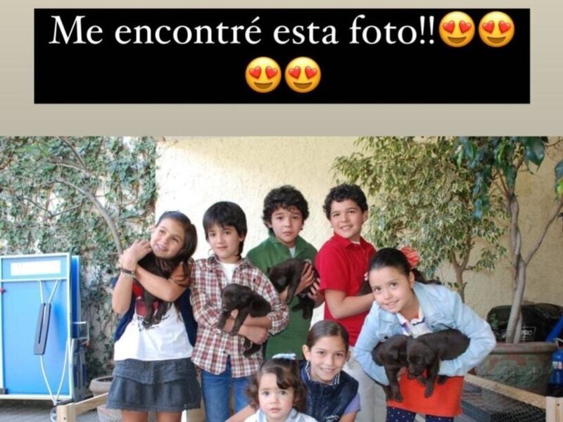 Solo escribió "Me encontré esta foto" junto a la imagen donde aparecen además sus otros hijos cuando eran más pequeños acompañados de sus mascotas, unos cuantos cachorritos.