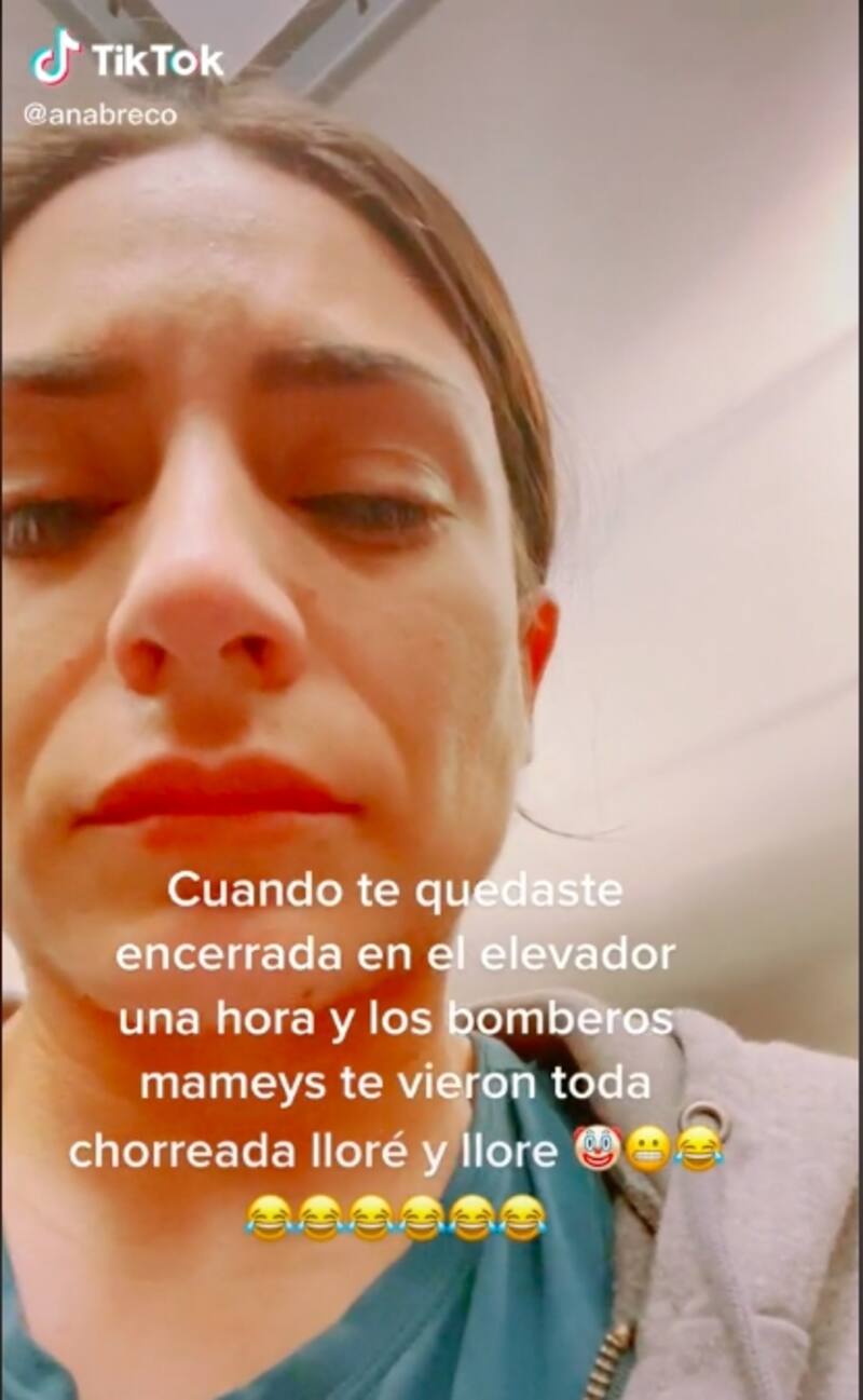 El corto video lo compartió en su cuenta oficial de TikTok. Se le ve angustiada con los ojos hinchados de tanto llorar. Se quedó atrapada por una hora en un elevador. No dio más detalles del incidente pero recalcó que fue súper fuerte permanecer sola en esas condiciones durante mucho tiempo.