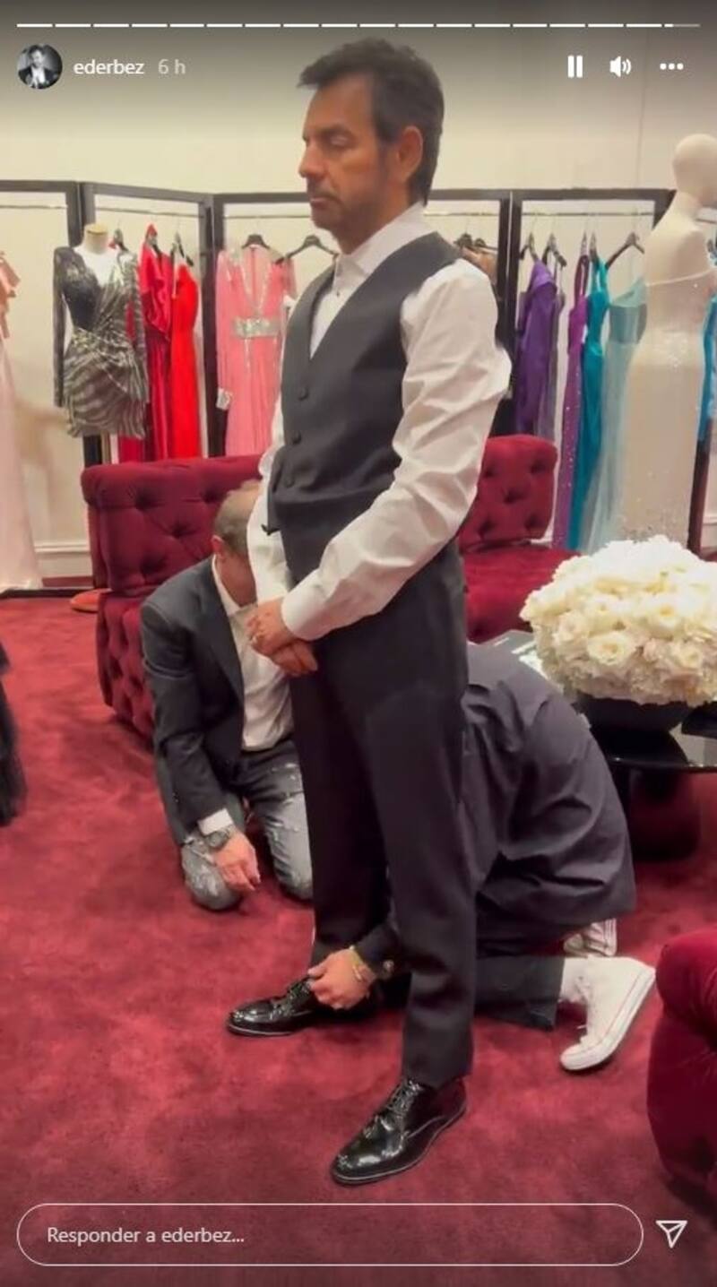 A su llegada a Los Ángeles, cerca de la medianoche de este sábado, Eugenio Derbez explicó que iría a su prueba de vestuario en la casa de Dolce & Gabbana, no sin antes por los protocolos sanitarios de los premios debía hacerse una prueba de covid-19, misma que le realizaron en plena calle.
