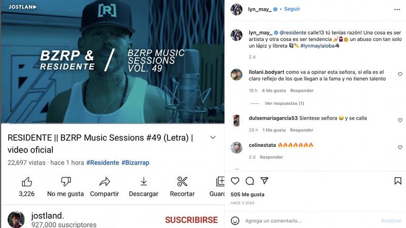"¡Residente, tú tenías razón! Una cosa es ser artista y otra cosa es ser tendencia. Un abuso con tan solo un lápiz y libreta", expresó la vedette y culminó con el hashtag #LynMayLaLoba en referencia a su propia canción.