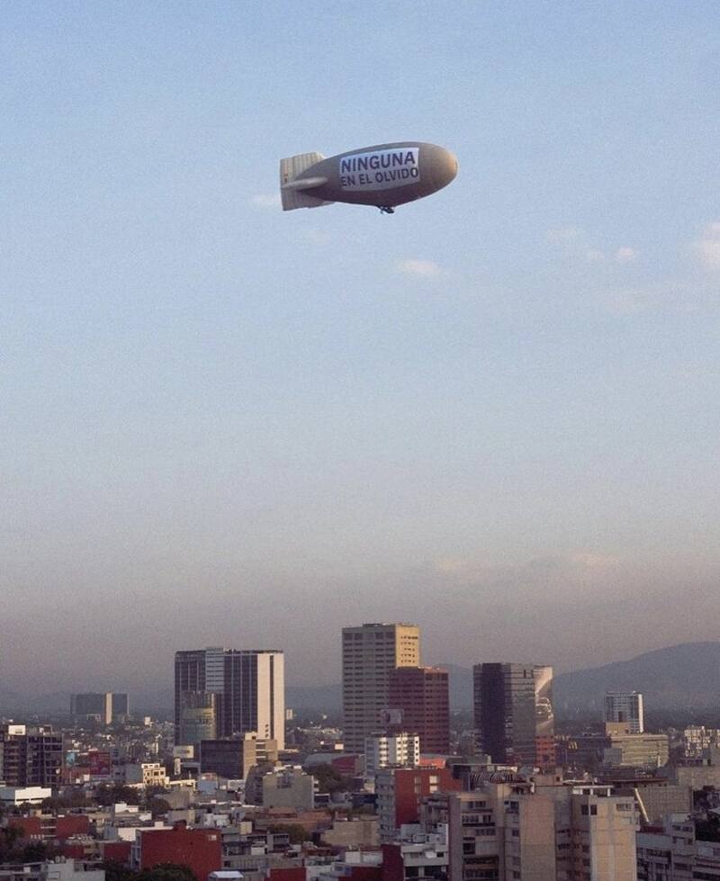 A través de su perfil de Instagram, la hija del histrión Gonzalo Vega posteo una sencilla foto en la que se puede apreciar la inmensidad del cielo de la Ciudad de México, mientras un dirigible lo atraviesa con la leyenda "Ninguna en el olvida".