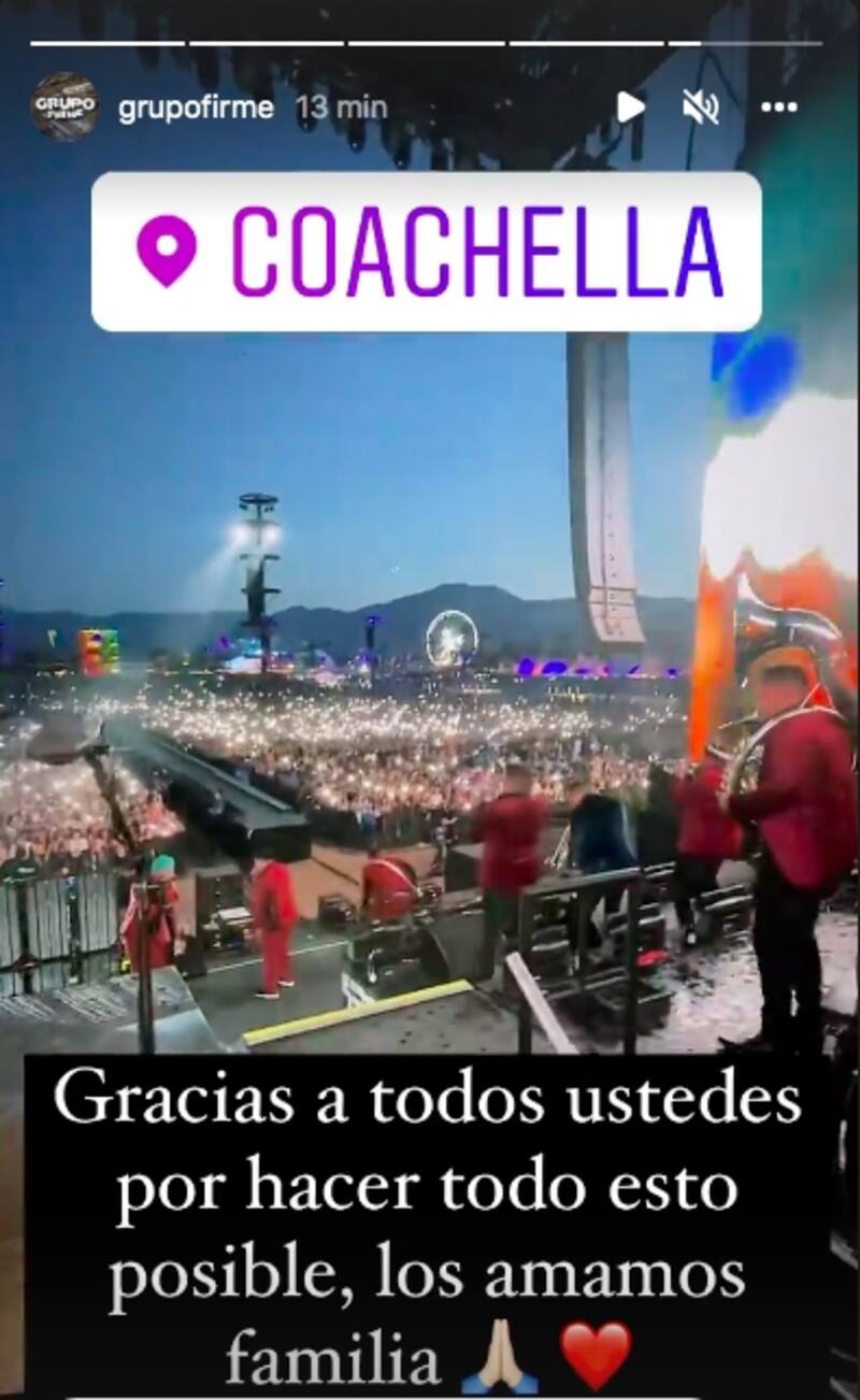 Minutos después de salir del escenario, Grupo Firme le agradeció a sus fans y al festival la oportunidad de tocar frente al grandioso público. "Gracias a todos ustedes por hacer todo esto posible. Los amamos, familia", escribieron en su cuenta.