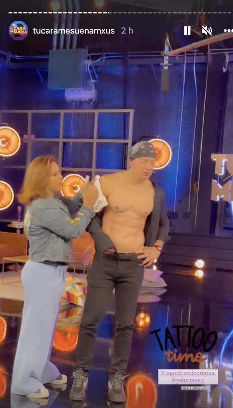 Fue antes de su presentación, en los camerinos del show que Angélica Vale le dio su tip y su amuleto para triunfar, el cual -en tono de broma- se trató de un tatuaje temporal con la cara de la jurado. Para ponerle dicho tatuaje, la hija de Angélica María hizo que el actor se quitara la playera, sorprendiendo el físico que el cantante ha logrado gracias a su dedicación en el gym.