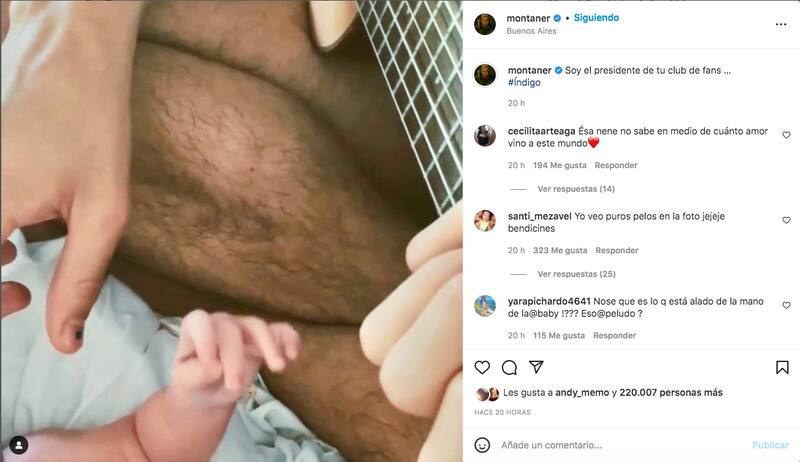 Luego del triste anuncio, Ricardo Montaner como todo un abuelo orgulloso, publicó la primera fotografía de Índigo en su perfil, la que Camilo compartió para anunciar su llegada, y le agregó lo enamorado que está de ella. "Soy el presidente de tu club de fans..." escribió.