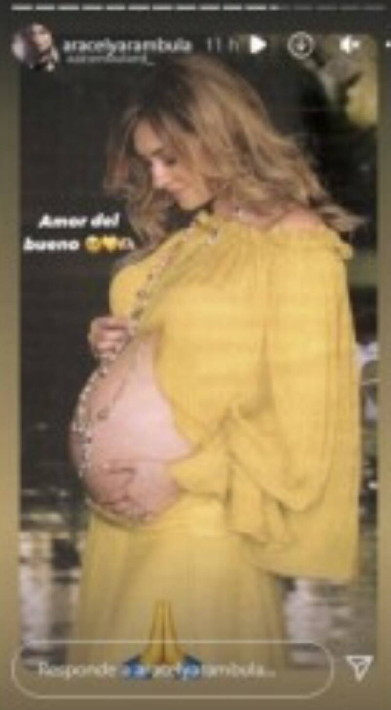 Acompañando esta imagen, en la que se puede ver a Arámbula vestida de amarillo y sosteniendo de manera tierna su voluminosa pancita de embarazo, la ex de Luis Miguel escribió: "Amor del bueno", lo que rápidamente causó sensación entre los internautas que no daban créditos.