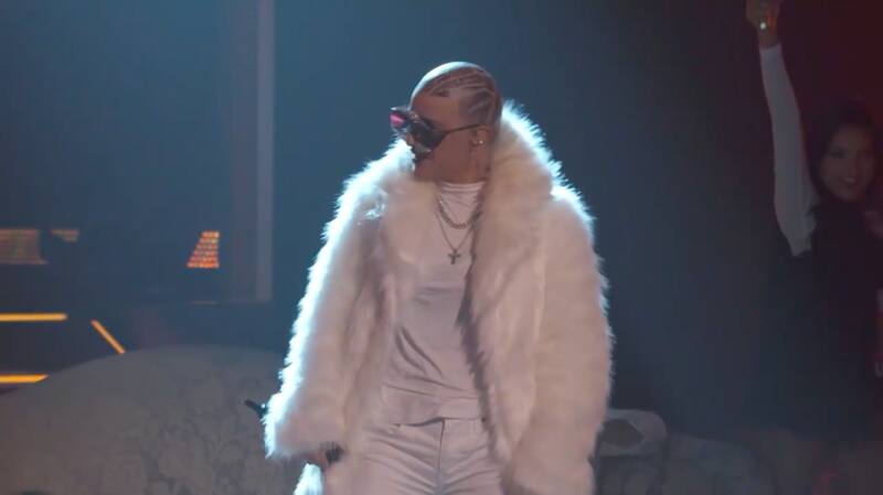Llegó el momento. No vimos a Ninel Conde, ¡totalmente era Bad Bunny! Con un abrigo voluptuoso color blanco, lentes con brillo y totalmente calva con tatuajes interpretó de manera espectacular al reggaetonero. Cada movimiento, baile y hasta un curioso brinco lo hizo idéntico al video de la canción.