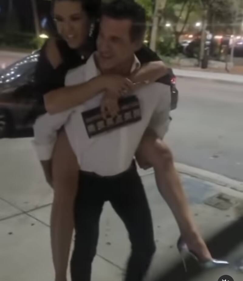 Fue el mismo Jorge Aravena, quien compartió el clip en redes sociales, en el cual la ganadora de "La casa de los famosos" ya no quiso caminar y él en un acto de gentileza la cargó en su espalda para evitar que dañará sus zapatos, mientras Machado disfruta de la situación.