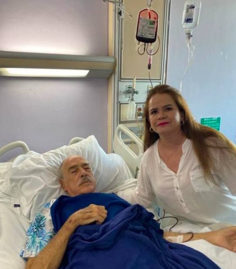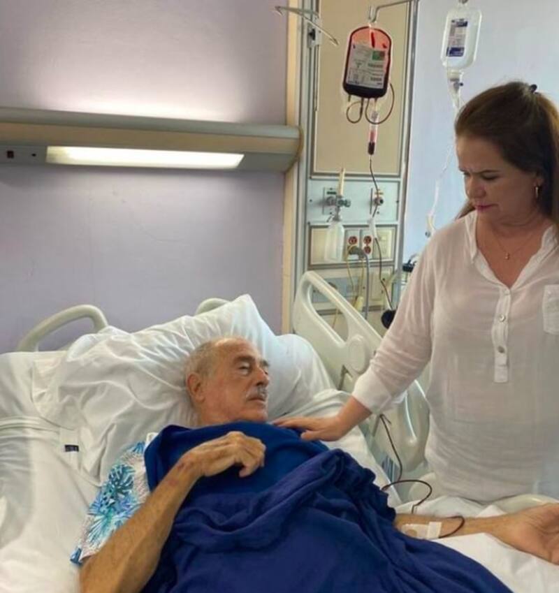 En esta publicación mostró que el actor recibió una transfusión de sangre a tiempo y agradecido, le envió un mensaje al personal médico por todas las atenciones. Como siempre junto a él se encontraba Margarita Portillo, su pareja 30 años menor.