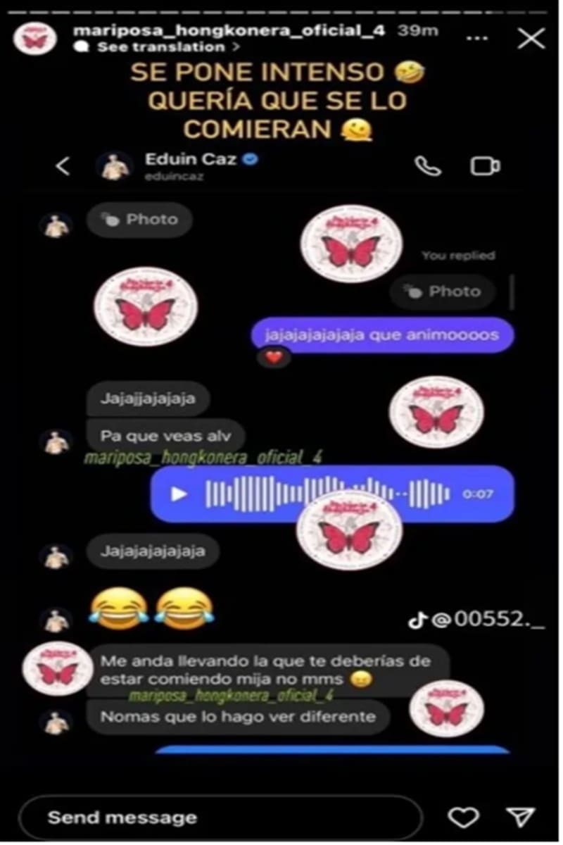 En pleno embarazo de su esposa de Daisy Anahy, con quién espera a su tercer hijo, Eduin Caz, fue evidenciado en redes sociales, por la cuenta, “mariposa_hongkonera_oficial4″, donde filtraron una serie de conversaciones candentes que el cantante habría tenido con una joven, de quién hasta el momento se desconoce su identidad.