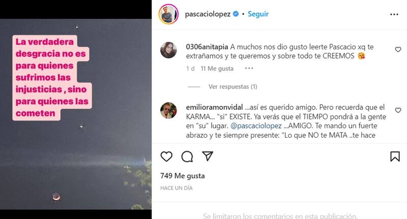 Previamente te informamos que TiempoX te informamos que el actor Pascacio López fue liberado de la cárcel tras casi un año recluido, luego de que la también actriz Sarah Nichols lo denunciara de abuso; ahora reapareció en sus redes sociales con este mensaje.