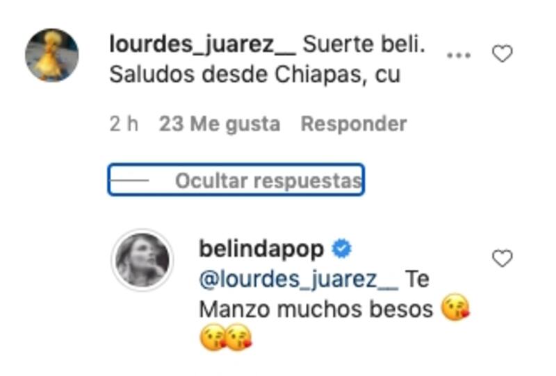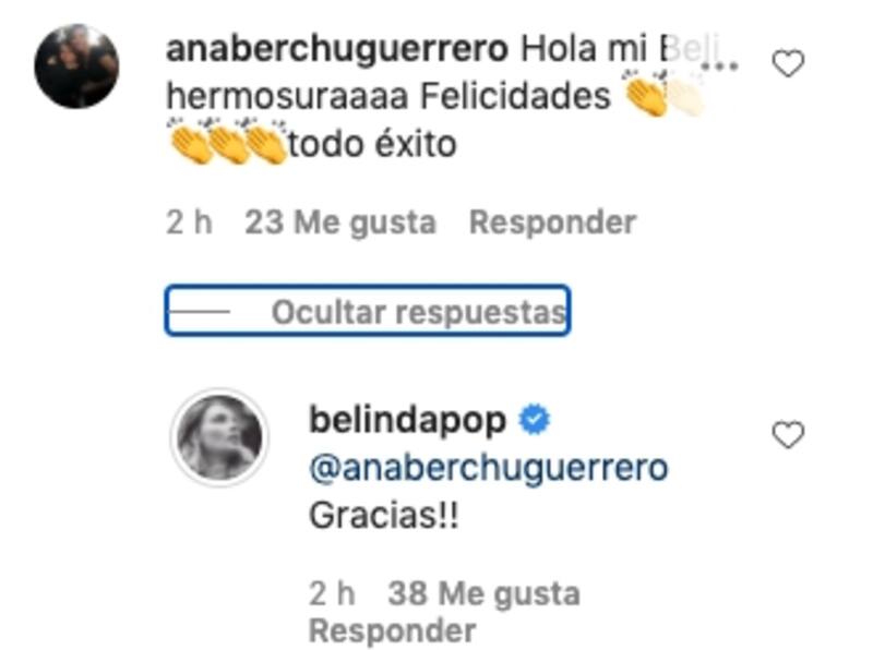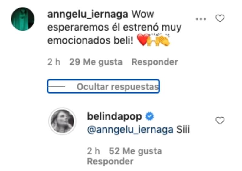 Luego de la publicación de dicho post, la cantante con más de 13 millones de seguidores, anunció en sus Instagram Stories que estaría contestando los comentarios de sus fans, y así fue, Belinda contestó a los comentarios de sus fans entusiasmados por la nueva serie.