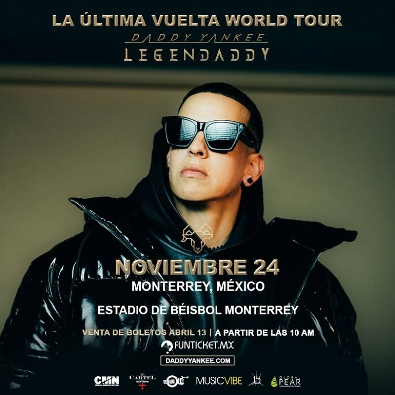 Daddy Yankee se presentará el jueves 24 de noviembre en el Estadio de Béisbol Sultanes de Monterrey, en la capital del estado de Nuevo León.