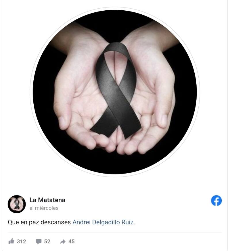 Andrei Delgadillo Ruiz, vocalista de La Matatena, falleció la tarde del miércoles 27 de abril, confirmó la banda de ska en una publicación en Facebook, en la que expresó que estaba en shock por la noticia, sin dar mayor detalles de la causa de muerte.