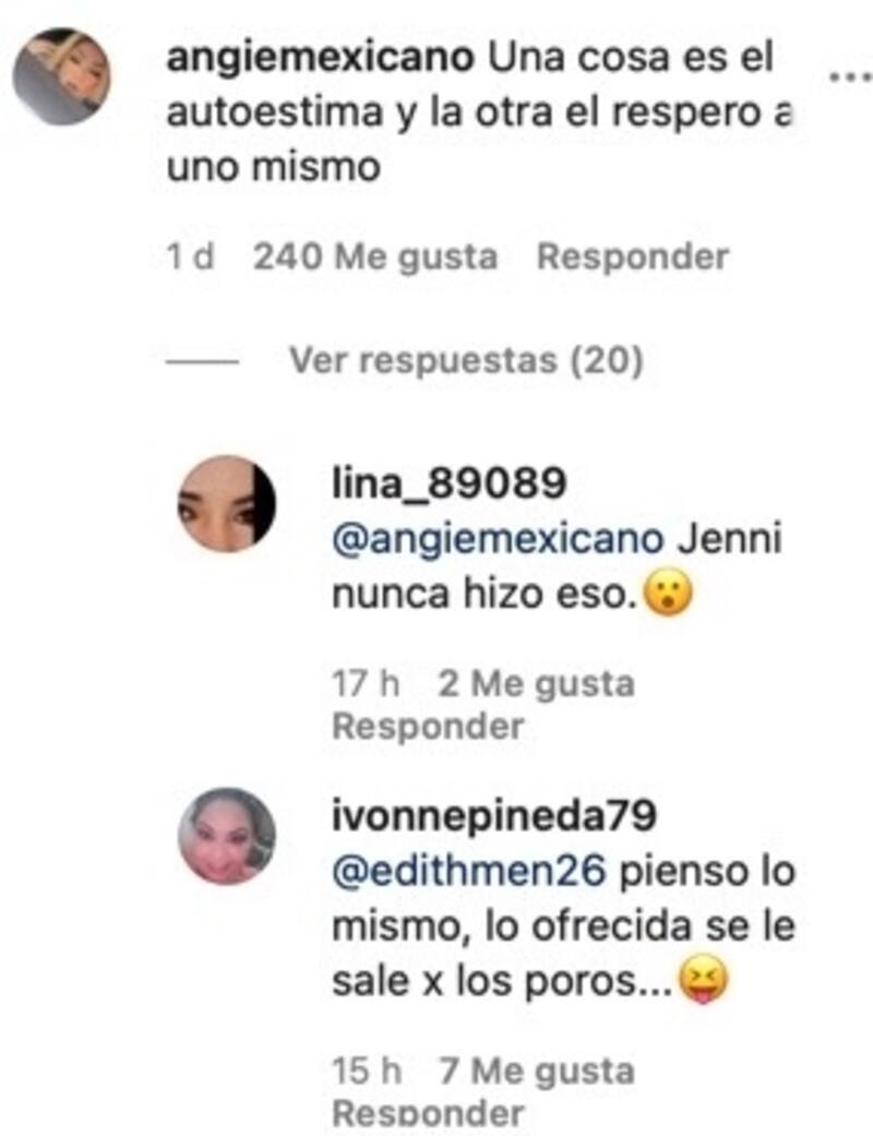 Otros internautas no se vieron tan contentos con la publicación, una seguidora de la Chiquis Rivera comentó: "Una cosa es el autoestima y otra el respeto a uno mismo" Mientras que otros se refirieron a la mamá de la cantante, Jenni Rivera: "Jenni nunca hizo eso"