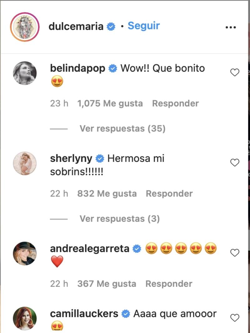 Los fans y celebridades no tardaron en reaccionar en tan bella fotografía. Camila Sodi y Romina Sacre compartieron emoticones de corazones mientras que Belinda escribió "Wow!! Qué bonito"