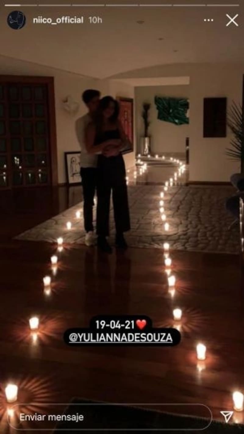 A través de su perfil también compartió algunas fotos y videos de la sorpresa llena por un camino de velas, que le preparó su ahora novio Nicco, como se conoce artísticamente al hijo de Ludwika Paleta.