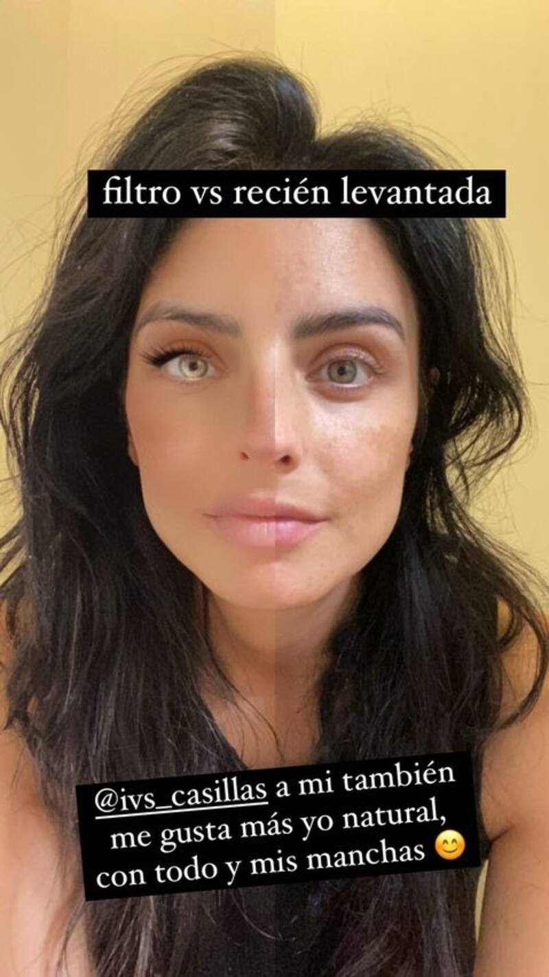 Al respecto, la actriz compartió en sus Instagram Stories, una fotografía en la que hace su respectiva comparación sobre cómo luce con filtro y sin filtro, y el resultado es increíble.