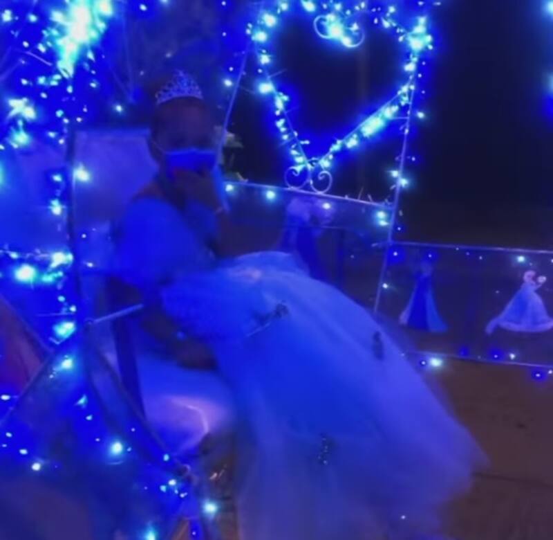 La celebración inició con la festejada dando un paseo en un carruaje azul adornada con luces blancas muy parecido al de la Cenicienta. Eso sí, la madre de la pequeñita dejó en claro que el carruaje no fue jalado por caballos reales, que han sido sustituidos por vehículos de motor, procurando así el cuidado de los animales.