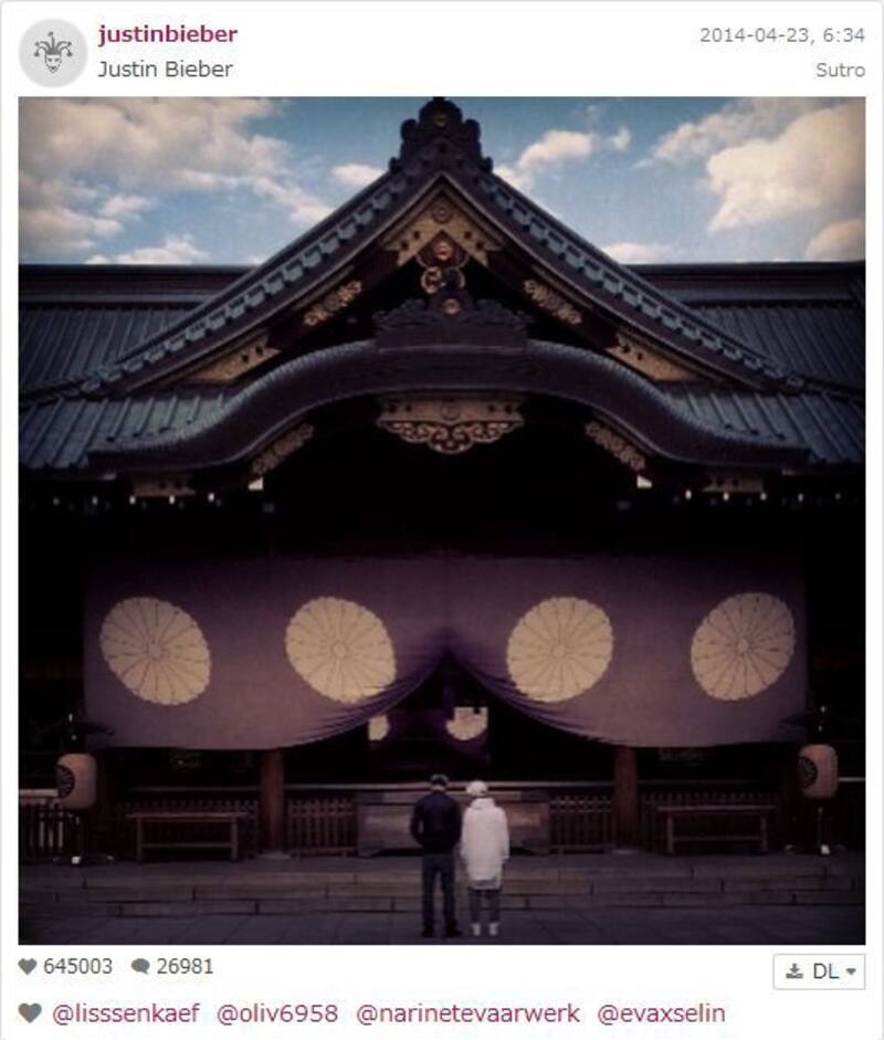 En esta misma lista se encuentra Justin Bieber luego de que publicara un autorretrato en el Yasuki Shrine de Tokio, un lugar de culto sintoísta donde se rinde homenaje a los japoneses muertos en las guerras, entre ellos 14 criminales de guerra condenados por los aliados tras la derrota de Japón en la Segunda Guerra Mundial.
