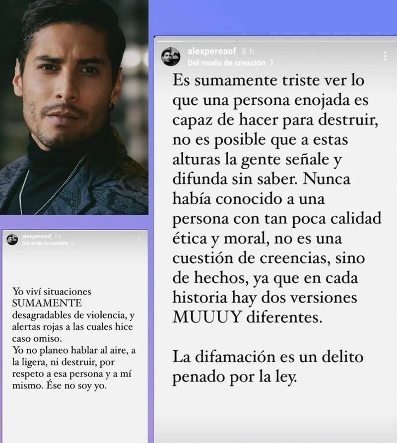 Por su parte, y ante estas acusaciones, Alex Perea salió a dar su propia versión de los hechos y a través de redes sociales, de igual forma compartió que se encuentra triste de ver lo que es capaz una persona enojada de hacer, además de que tampoco había conocido a una persona con tan poca calidad ética y moral, sin especificar a quién se refiere.