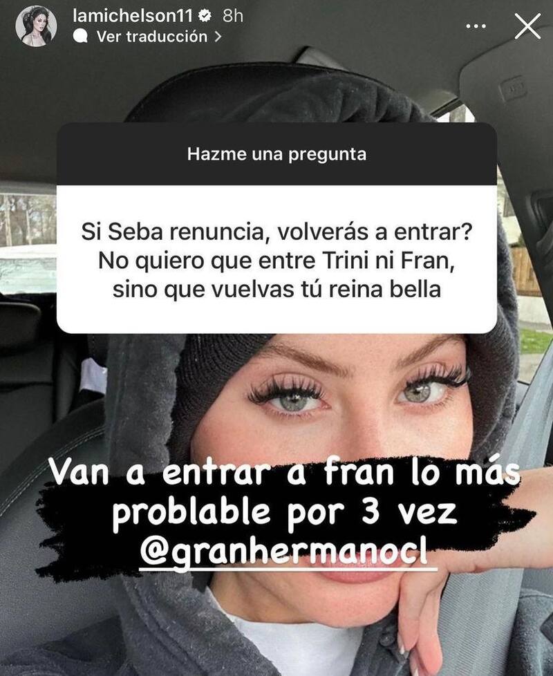 Y es que en la modalidad de preguntas y respuestas en Instagram, le preguntaron a Ignacia Michelson que si en el caso de que su amigo renunciara ella estaría dispuesta a reingresar.