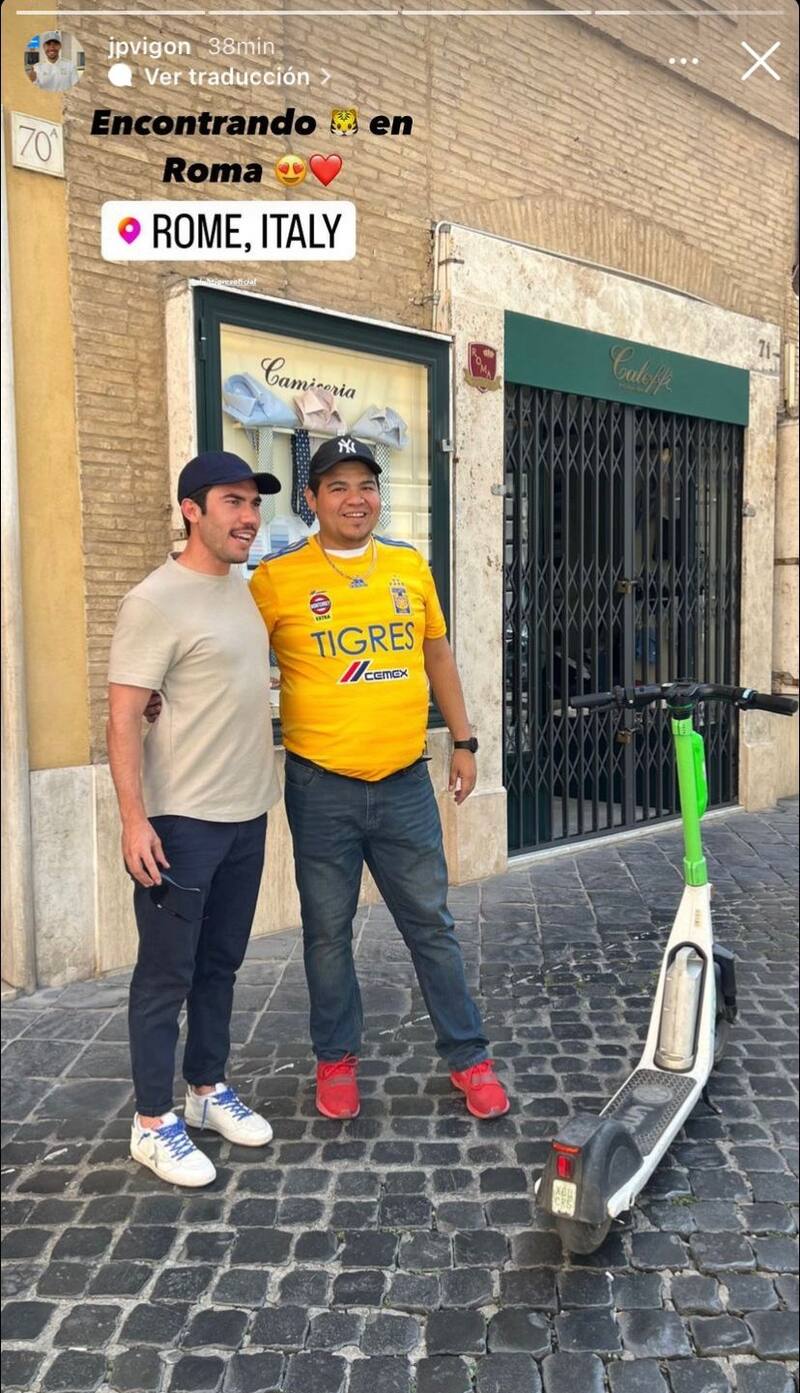 "Encontrando a un Tigre en Roma", publicó el centrocampista y autor de 5 anotaciones con los de Miguel Herrera en el Clausura 2022. Por lo que posó junto al seguidor de los universitarios y lo subió a sus historias de Instagram. Además, ayer se reunió con Leondro Cufré, extécnico del Atlas.