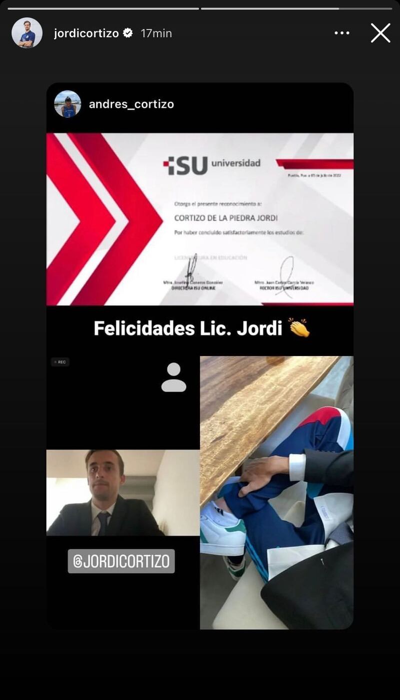 Jordi Cortizo, jugador del Puebla, se recibió este martes como licenciado en Educación en el Instituto Suizo. El futbolista de la Franja de la Liga MX compartió mediante redes sociales que terminó el grado y fue festejado por su familia y seres queridos.