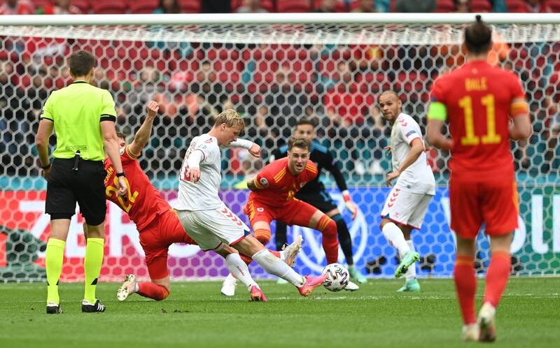 Dinamarca está derrotando 1-0 a Gales en el primer partido de octavos de final de la Eurocopa, gracias a un gran remate de media distancia de Kasper Dolberg, quien adelantó a los daneses cuando peor la pasaban en el partido.